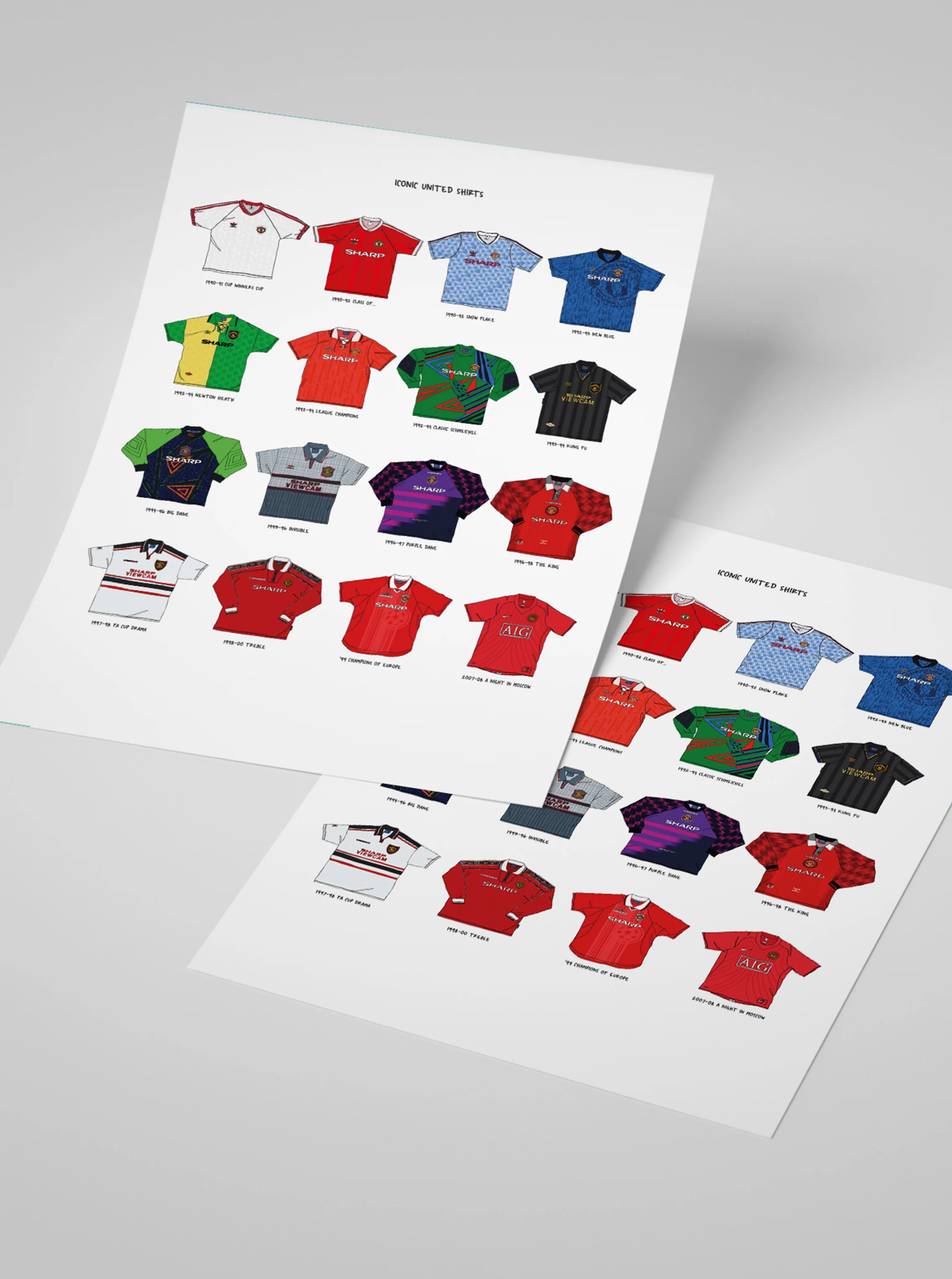 Iconic Manchester United Shirts A3 Print